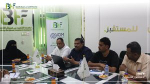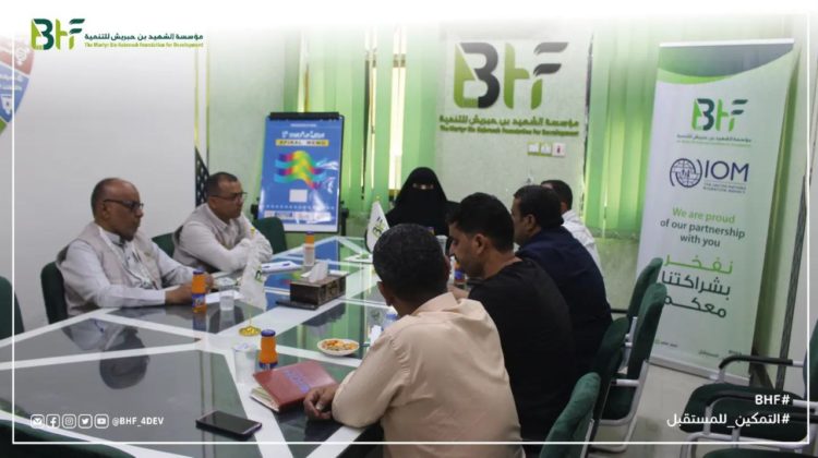 زيارة وفد من منظمة الهجرة الدولية IOM لدراسة السبل الأولية لتنفيذ مشروع [ مياه من أجل الماسك والسلام في اليمن ] الذي يهدف إلى بناء قدرات مجموعة قيادات الشباب والنساء وكذا تعزيز التماسك والترابط المجتمعي وتوثيق روابط العلاقة بين السلطة والمجتمع والتوعية بأهمية تفعيل أدوار النساء في حل الصراعات المجتمعية.